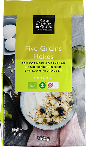 Ingredienser: HAVREFLAGER*, BYGFLAGER*, RUGFLAGER*, SPELTFLAGER*(HVEDE) ENKORNSFLAGER* (HVEDE). * = Økologisk.